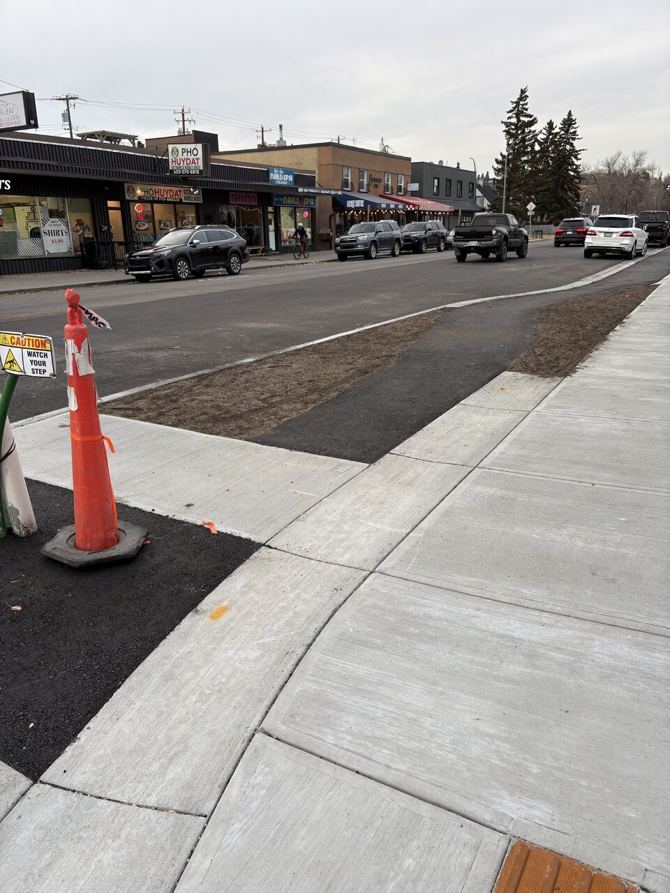 New bike lane being built at 19th St NW. Seems like the pole is here to stay and the bike lane is narrowed and winding, probably to decrease speed approaching the intersection, which is a good design choice.