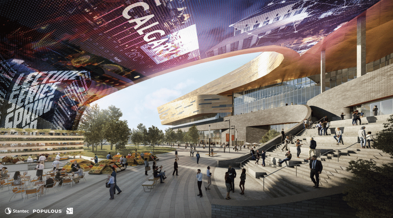 Looks like some kind of residential/professional building behind the expansion, it that's the vision I'm not sure that really ties into what they want "Stampede Way" to be. But it is just rendering.