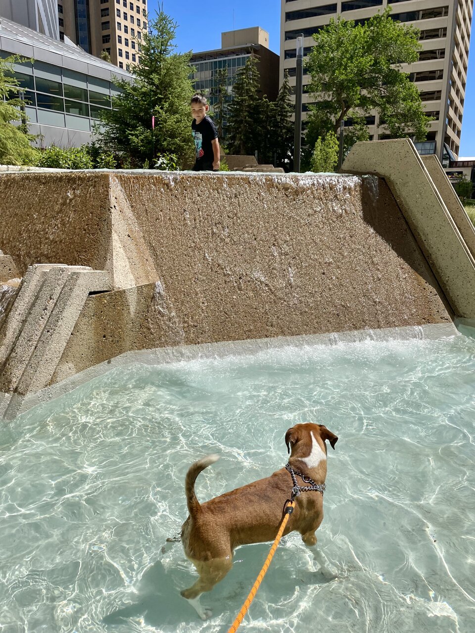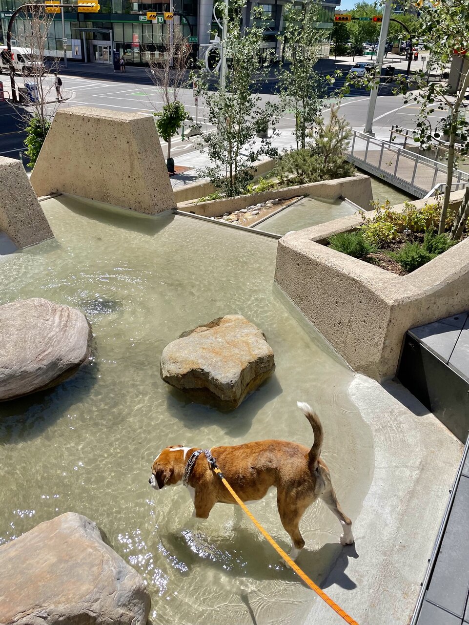 Some pics from mine and Aurora’s adventure to the park after the opening ceremony. The only issue I had with the place is that as soon as we got there, we simply walked through the splash area (walked, didn’t stop), and security rushed right over to tell me dogs weren’t allowed. Without stopping I just smiled and said “well then there should be signs” and continued the exploration. I then let her swim in any body of water in the park that she wanted to