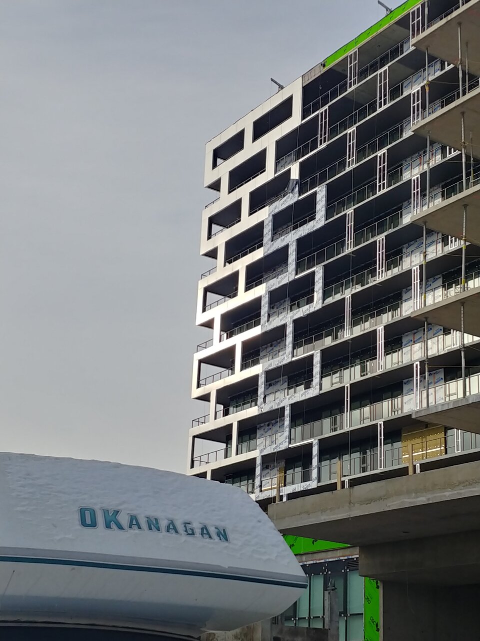 I must be into this building way too much. Most guys dream at night of sexy women, whereas I had a dream the other night, that I was peeling the plastic wrap off of the panels.