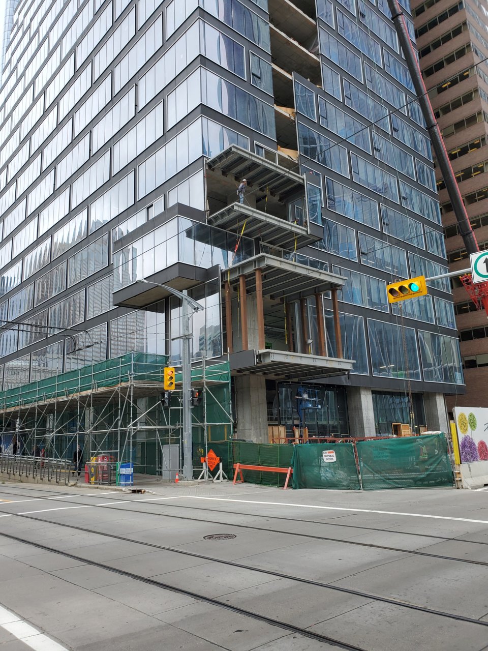 The building should be buttoned up by October and the office floors are in the lower half. They have suites booked for the first week of September. It will take some doing to have the facade up in the hoist units by then