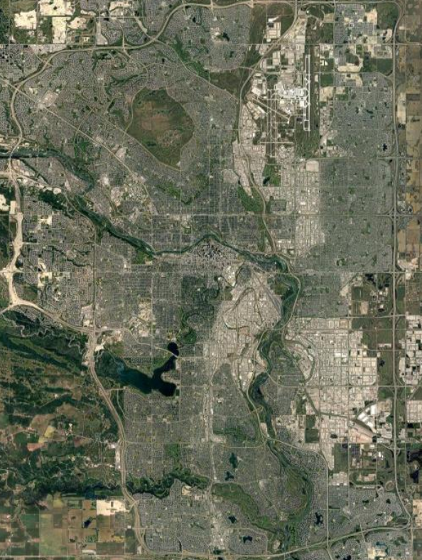 This is Calgary, and really most cities. We're landlocked but our highways and river valley segment the city into islands. There's decent transit within islands and from the islands to downtown but otherwise it is tough to get around without a car.