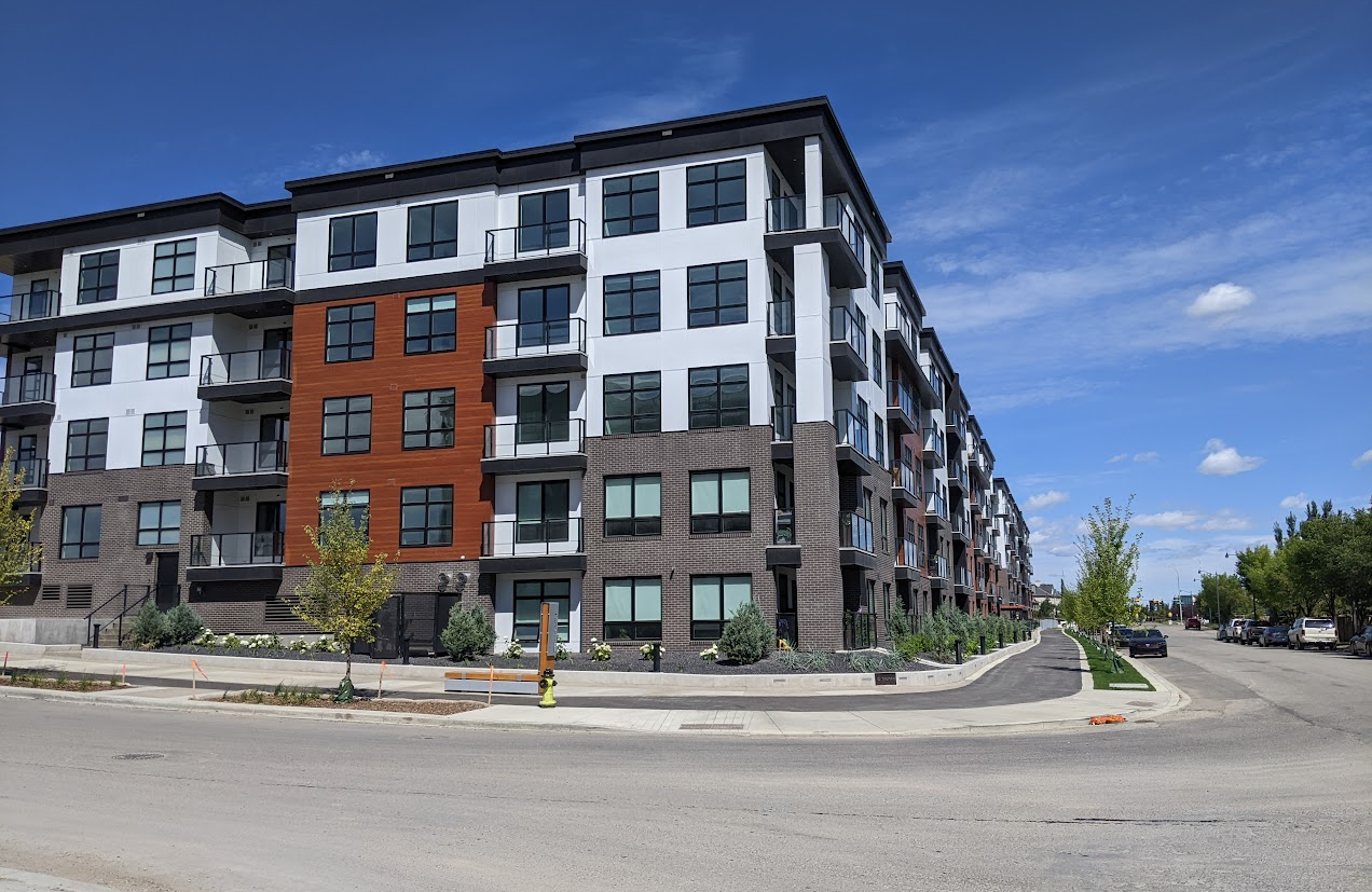 There has been an empty parcel of land just off 85th Street, near West District, left undeveloped since the neighbourhood of West Springs was first established. A couple years back, a sign appeared advertising a new development on the site called "West Springs Landing."