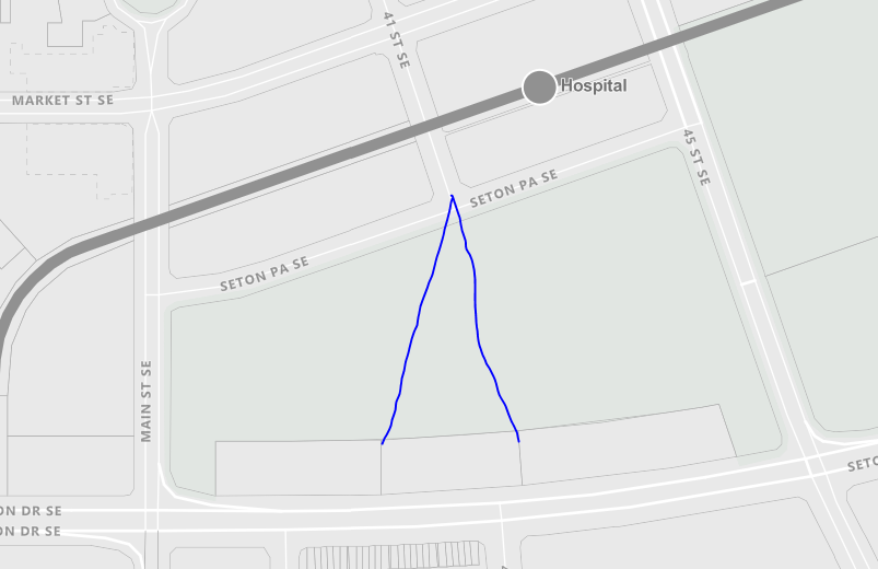 With or without the LRT, the direct walking connections around here should be prioritized - it's only 500m to the hospital and a variety of stuff along that Market Street that would take these blue lines. A similar direct connection should be to the high school and the recreation centre.I was thinking the same thing with the pathways. If you don't have a paved option, I could see a dirt trail cutting across the park being used to get to the LRT station.