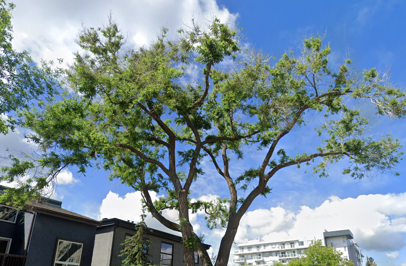 Those look to me like Siberian Elms, which do not handle Chinooks very well. As much as I hate seeing mature trees cut down, unfortunately with Siberian Elms they just aren't well suited for our climate and experience massive die offs every few years. I've had to remove many.