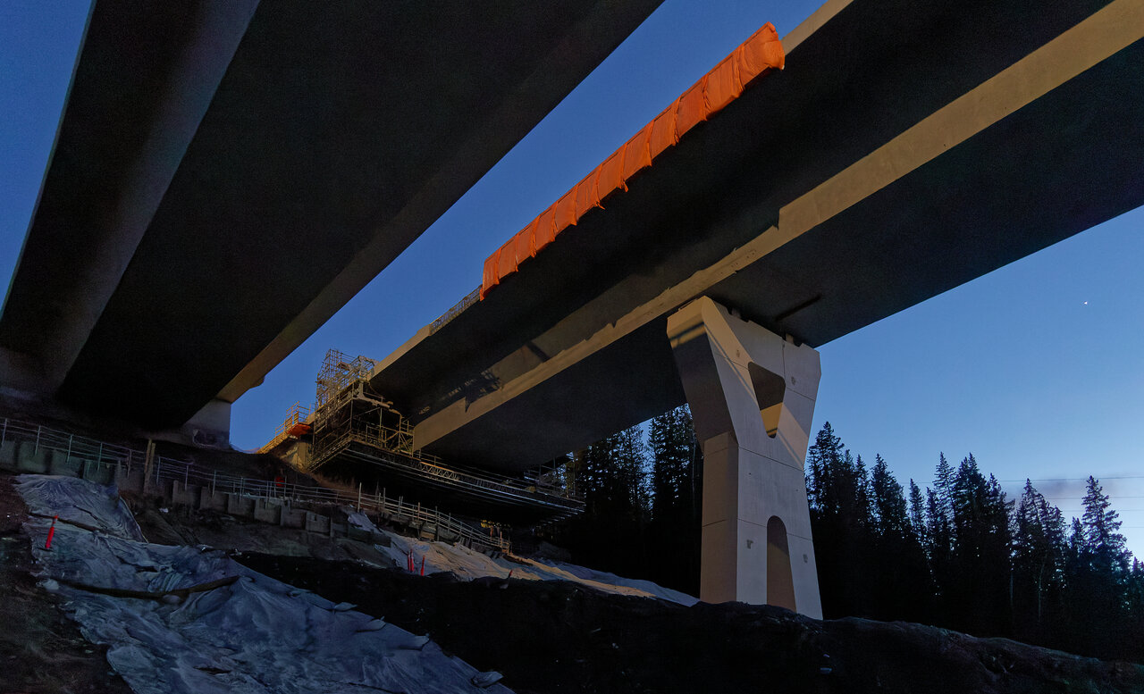 Stoney Trail Bridge construction pics taken a few nights ago. They're still working on the bridge where it anchors into the hill on the south side.