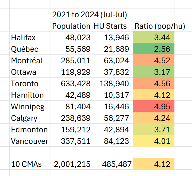 Meanwhile most places have declining population growth rates over time, Alberta's too. The aging baby boom pushes up death rates and the continued slump in births has flipped most provinces to negligible/negative natural growth with the majority coming from immigration. As we have seen more recently, immigration policies are under significant scrutiny and shifting perspectives, so outlook is pretty fuzzy on what that it will all mean. But given those trends, the overall growth rate is likely to be lower everywhere in the future.
