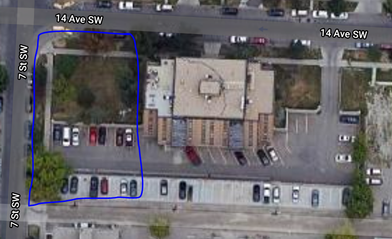 Let's say I am a condo board or building owner of one of the Beltline's 1970-80s developments. In this example, we are looking at the building right across from the new Redstone Tower at 14 Ave and 7 Street SW. Taking immediate political issues aside (e.g. getting the condo owners to agree), how could I sell this section circled in blue off to a developer and redevelop it? Would it be worth it for me? Would it be worth buying as a developer? What is 0.25 acres of land worth in the Beltline? Other than convincing owners, what would be the main hangups when attempting such a move?