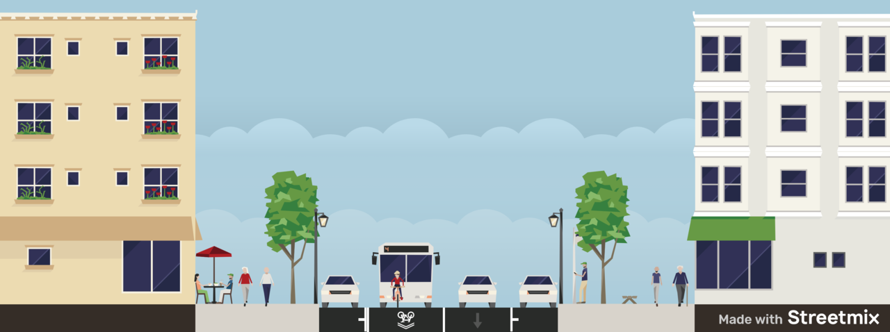 And here is what I think it ought to be if you want to create a street that residential development would actually want to be on (Two-Way example):